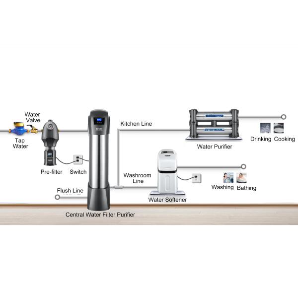 The whole house water purification system instantly fixes iron, hydrogen sulfide (sulfur rotten egg smell), manganese, zinc, copper, lead, uranium, radium, radio nuclides, heavy metals. Also it could remain the micron elements in water.